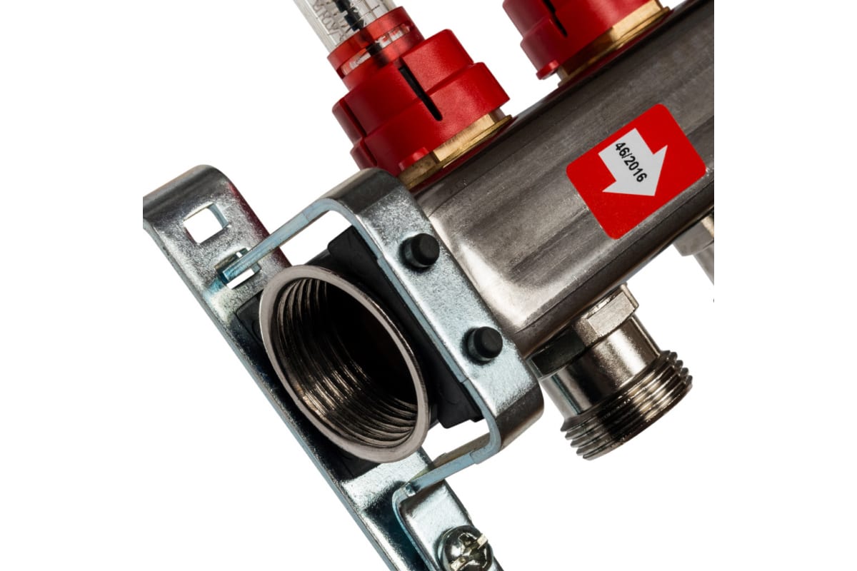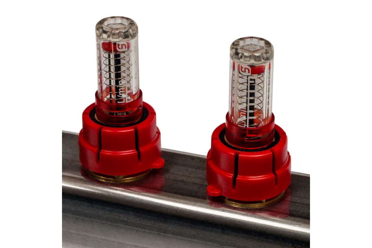 Коллектор из нержавеющей стали с расходомерами используется в системах отопления для подачи, распределения и регулировки потока теплоносителя. Наличие расходомеров дает возможность контролировать расход воды.