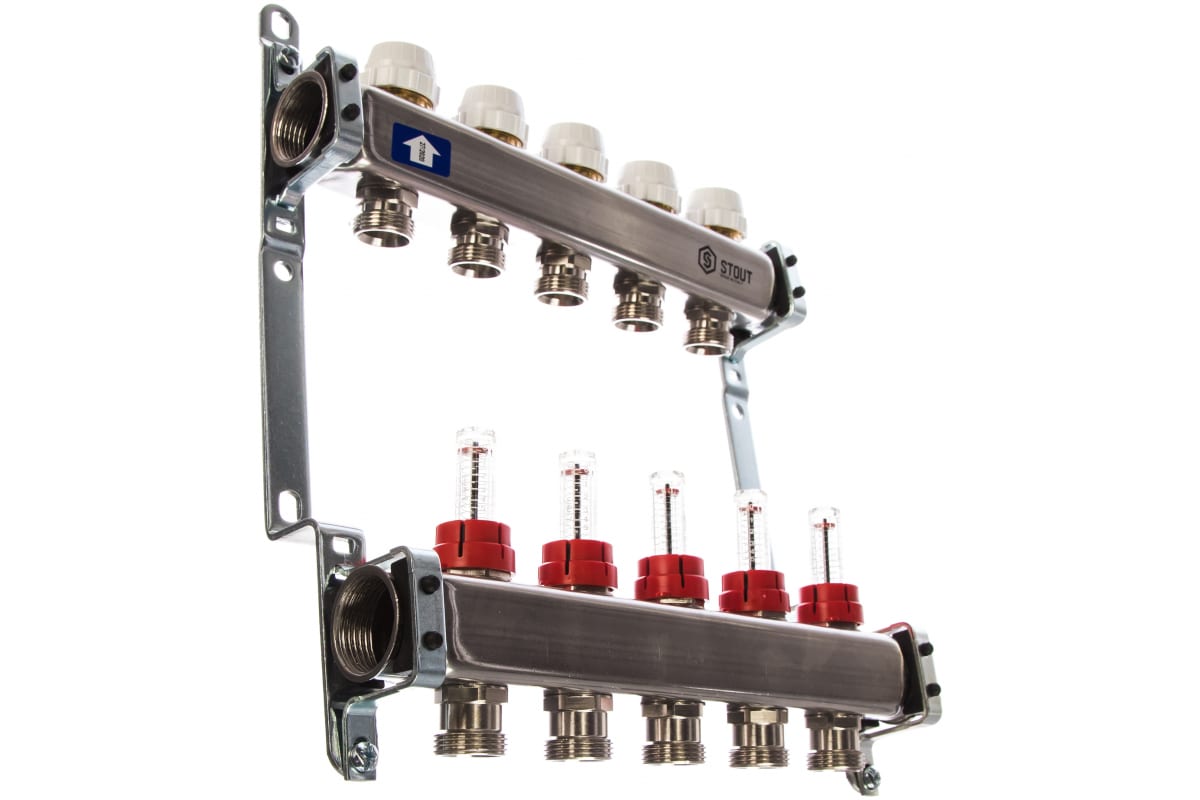 Коллекторная группа 5 отводов 1"x3/4"(18)EK с расходомерами Stout (нерж.сталь) (SMS-0917-000005)