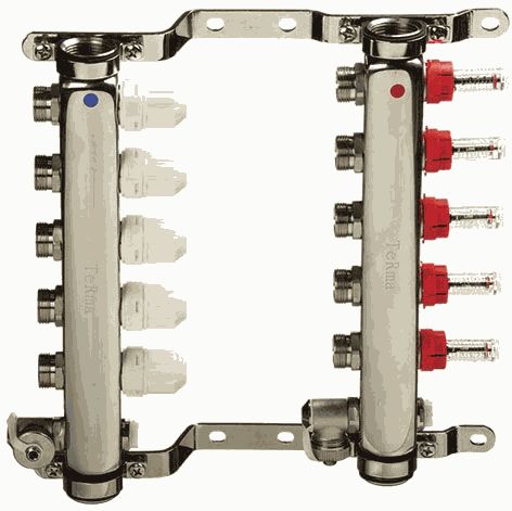 Коллекторная группа 5 отводов 1"*3/4"(18)EK с расходомерами TeRma (нерж.ст) (14105)