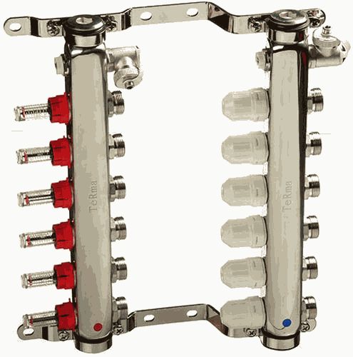 Коллекторная группа 6 отводов 1"*3/4"(18)EK с расходомерами TeRma (нерж.ст) (14106)