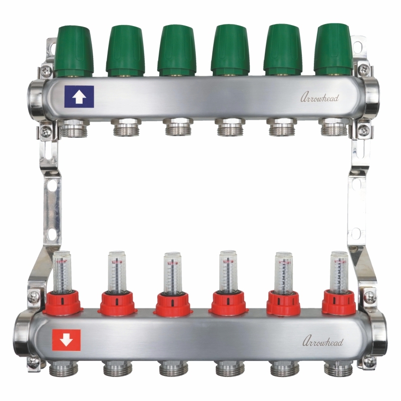 Коллекторная группа 6 отводов 1"х3/4"(евроконус) Arrowhead с расходомерами (нерж.сталь) (CS-500-06)