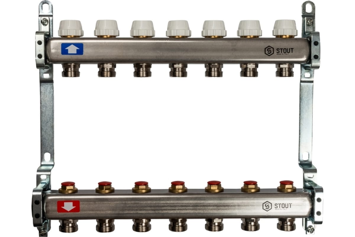 Коллекторная группа 7 отводов 1"x3/4"(18)EK без расходомеров Stout (нерж.сталь) (SMS-0922-000007)