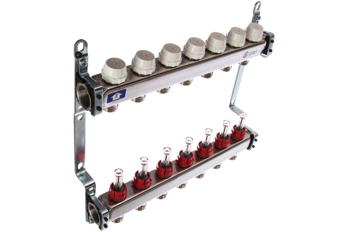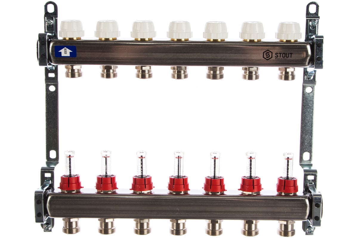 Коллекторная группа 7 отводов 1"x3/4"(18)EK с расходомерами Stout (нерж.сталь) (SMS-0917-000007)