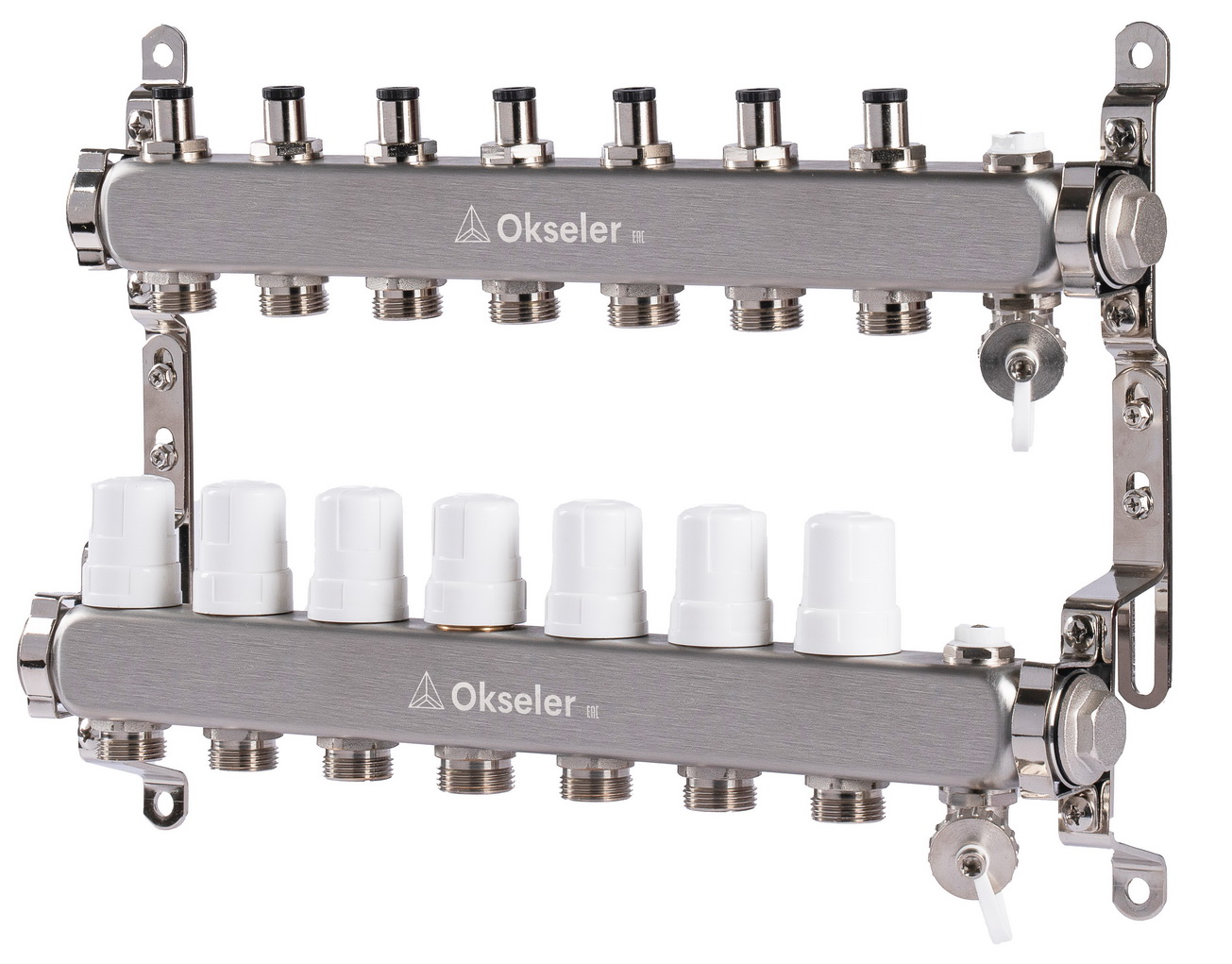 Коллектор Okseler на 7 выходов идеально подходит для систем отопления со средним числом контуров. Позволяет точно распределить теплоноситель по семи отдельным линиям, обеспечивая высокий уровень теплового комфорта. Поддерживает автоматизацию системы при установке сервоприводов, что делает его оптимальным решением для частных домов, квартир и коммерческих помещений.