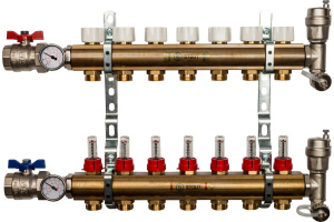 Коллекторная группа 7 отводов 1"x3/4"(18)EK в сборе с расходомерами Stout (латунь) (SMB-0473-000007)