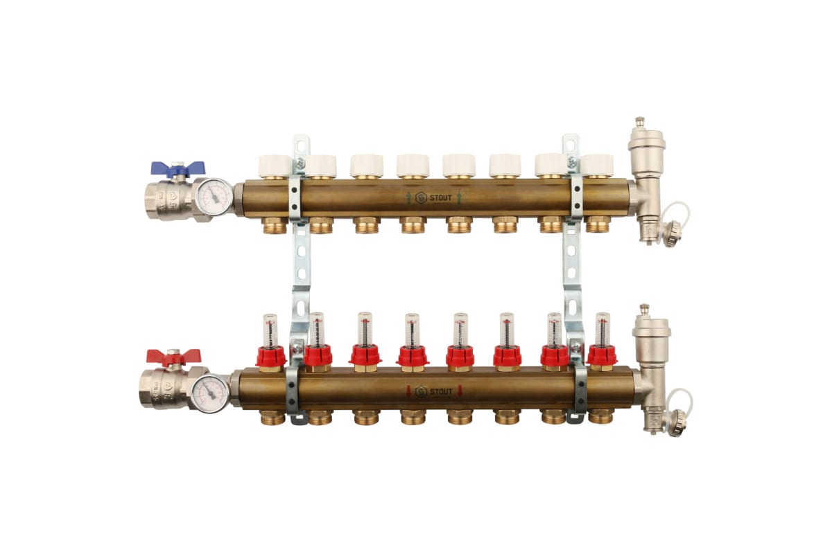 Коллекторная группа 8 отводов 1"x3/4"(18)EK в сборе с расходомерами Stout (латунь) (SMB-0473-000008)