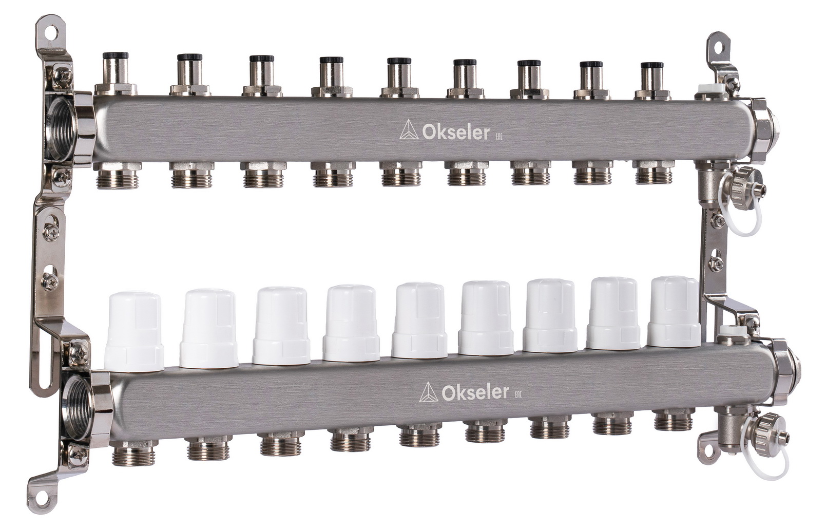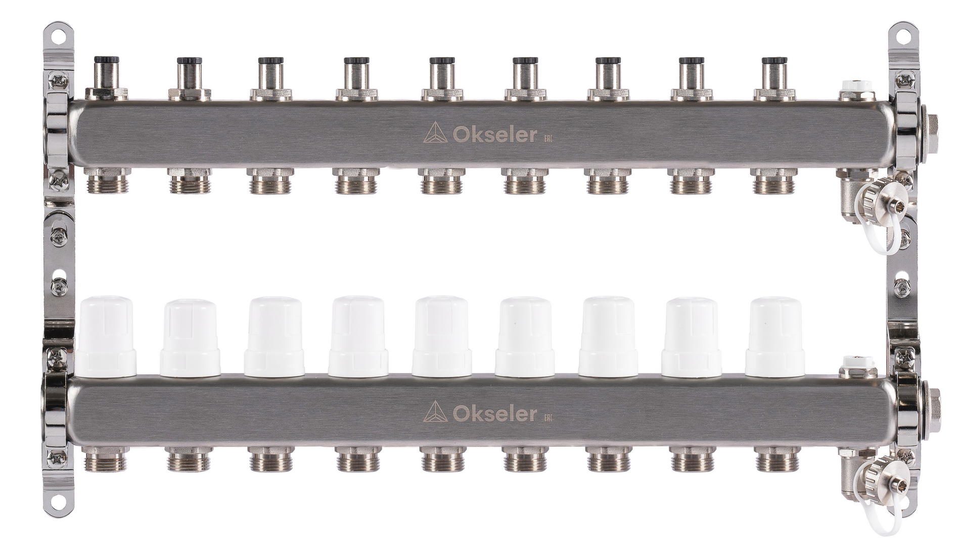 Коллектор Okseler способствует стабильной работе всей отопительной системы, продлевает срок службы её компонентов и позволяет достичь оптимального теплового комфорта. В комплект входят раздвижные монтажные кронштейны для удобной установки.