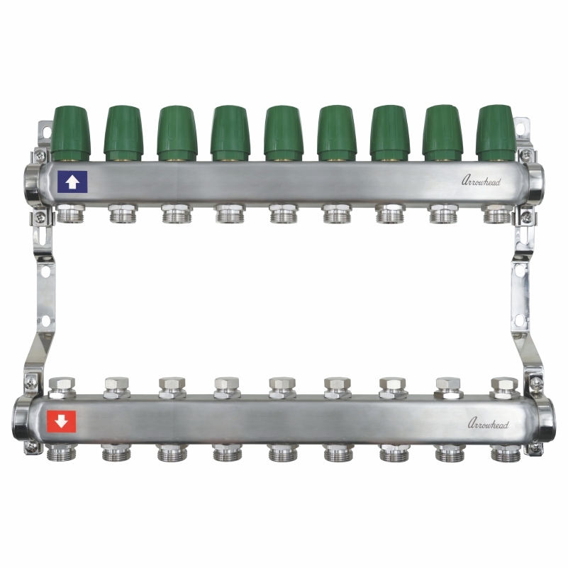 Коллекторная группа 9 отводов 1"х3/4"(евроконус) Arrowhead с настроечными клапанами (нерж.сталь) (CS-300-09)