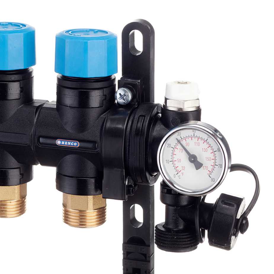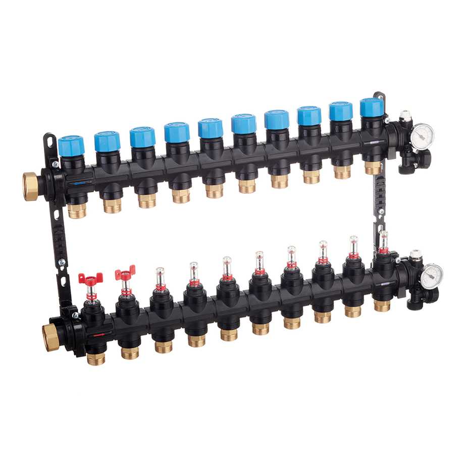 Коллекторная группа 10 отводов 1" с расходомерами и термометрами Henco (композит) (UFH-0605MDK10-03L)