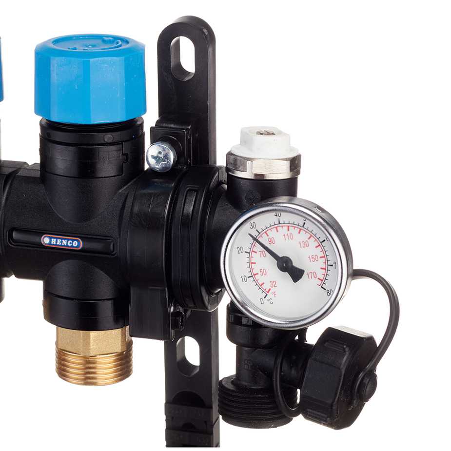 Коллекторная группа 6 отводов 1" с расходомерами и термометрами Henco (композит) (UFH-0605MDK06-03L)