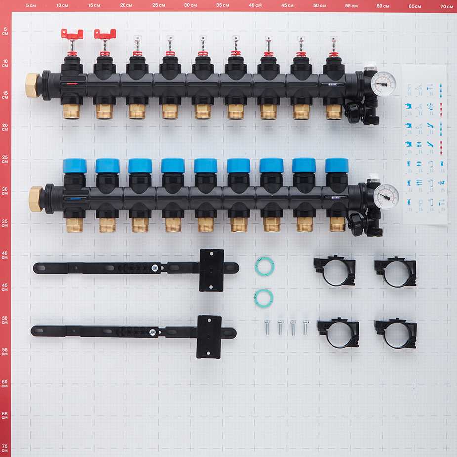 Предназначена для распределения потоков теплоносителя в системах радиаторного или напольного отопления. Состоит из подающего коллектора с расходомерами и обратного – с термостатическими клапанами, на которые можно установить электротермические сервоприводы. Позволяет проводить регулировку отдельно в каждом контуре системы. Присоединение труб осуществляется с помощью фитингов стандарта «евроконус».