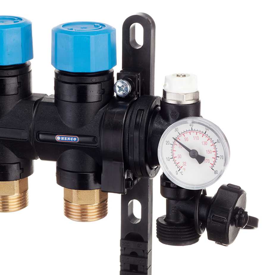 Коллекторная группа 9 отводов 1" с расходомерами и термометрами Henco (композит) (UFH-0605MDK09-03L)