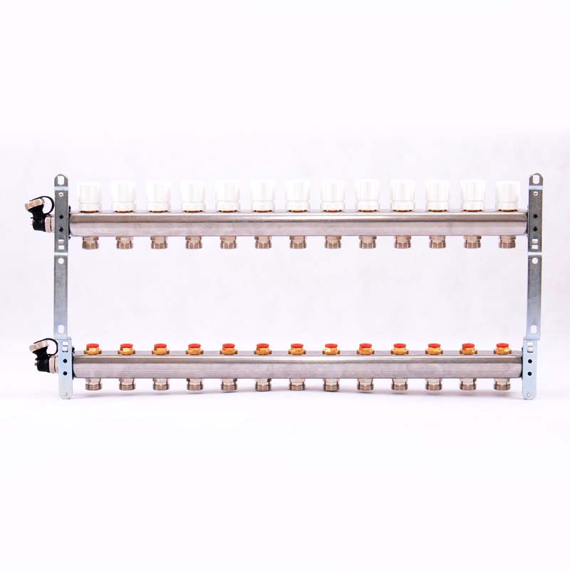 Коллекторная группа Uni-Fitt 13 отводов 1"х3/4" с балансировочными и термостатическими вентилями нерж. сталь