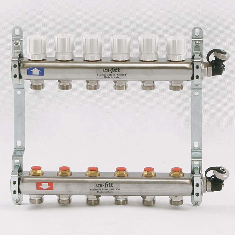 Коллекторная группа Uni-Fitt 6 отводов 1"х3/4" с балансировочными и термостатическими вентилями нерж. сталь