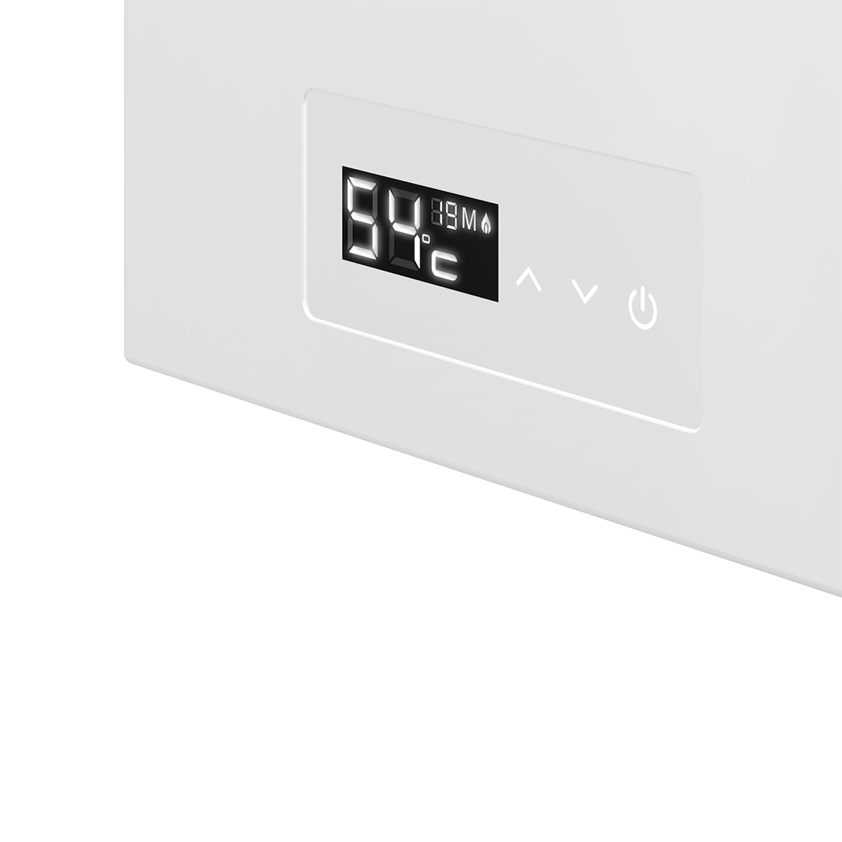 Сенсорное управление. На панели управления расположены сенсорные элементы - кнопка включения и регулировка температуры с точностью до градуса.