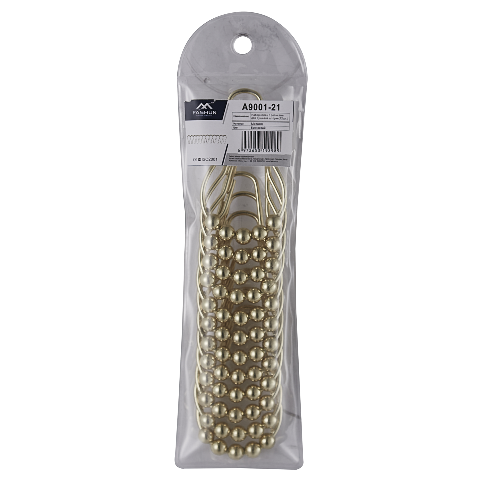 Кольца с роликами и замком для навеса шторок Fashun в ванную комнату 71х39 мм металл бронза (A9001-21)