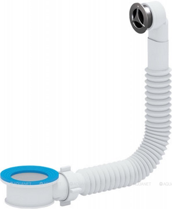 Адаптерное кольцо с гибким, круглым, вертикальным переливом. Применяется в случаях потребности установки в раковины, не имеющие встроенного перелива.