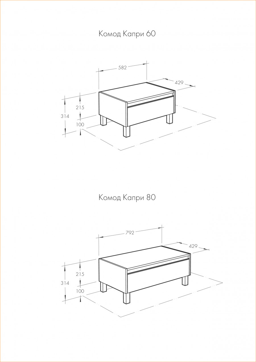 коллекция Капри сочетает в себе современные тенденции мебели для ванных комнат: удобные профильные ручки, интегрированные в фасад, светодиодную подсветку в зеркалах и зеркальных шкафах, актуальные цветовые решения и качественную фурнитуру. Коллекция выполнена в двух популярных размерах 600 мм и 800 мм. В размере 600 мм к тумбе предлагается зеркальный шкафчик, а в размере 800 мм - зеркало. Каждый комплект может быть дополнен комодом на ножках и удобной вместительной шкаф-колонной. Комод может быть установлен как непосредственно под тумбой, так и со смещением влево или вправо.