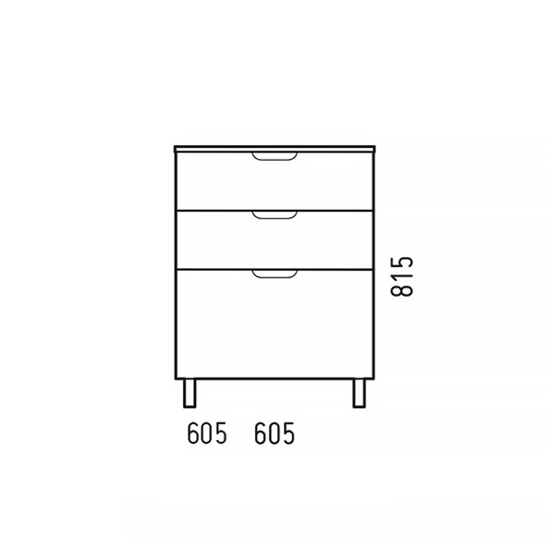 Напольный комод Омега 60 торговой марки Melodia della vita с габаритными размерами 300х605х815 это современное и эргономичное решение для вашей ванной комнаты. Конструкция комода включает в себя корпус с тремя ящиками на шариковых направляющих. Высота верхних двух ящиков 110 мм, нижнего - 250 мм. У комода четыре мет. опоры. Вместо ручки - красивый вырез по центру, снизу полоса тонкой фрезеровки. Поставляется в разобранном виде в комплекте с крепежом.