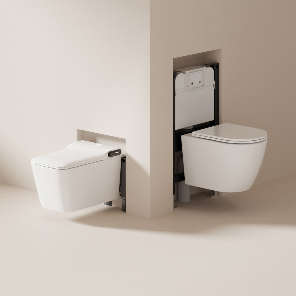 Комплект Abber подвесной электронный унитаз-биде Rechteck AC1215S с инсталляцией AC0101P2 (AC1215S-AC0101P2)