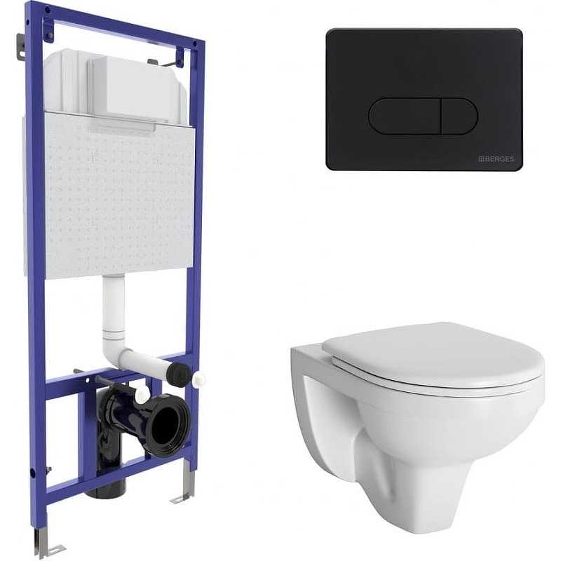 Комплект инсталляция с унитазом Berges GAMMA: инсталляция NOVUM525, кнопка D5, унитаз с сиденьем Gamma микролифт, быстросъем (042418)