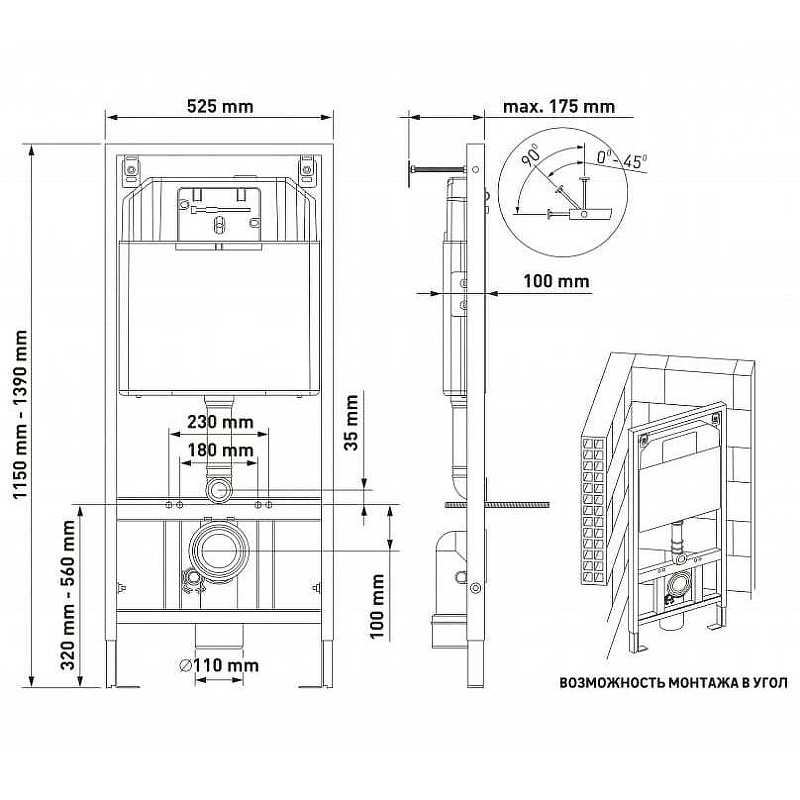 Полный Комплект BERGES для монтажа подвесного унитаза:инсталляция NOVUM525: толщина бачка 80 мм, смыв 3/6 литра, нагрузка 400 кг, антикоррозийное покрытие, кнопка L1 белый, пластик, унитаз GAMMA: Каскадный смыв, сидение дюропласт Gamma: микролифт,быстросъемное. Все крепежи для установки в комплекте. Возможность установки в угол.