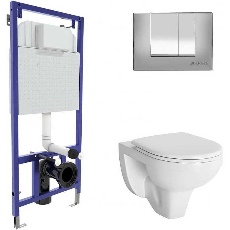 Комплект инсталляция с унитазом Berges GAMMA: инсталляция NOVUM525, кнопка S3, унитаз с сиденьем микролифт, быстросъем (042427)