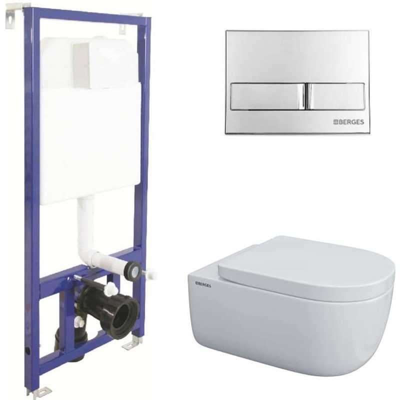 Комплект инсталляция с унитазом Berges инсталляция NOVUM525, кнопка L3 хром глянец, унитаз EGO XL 54 см, сиденье дюропласт Toma SO, микролиф