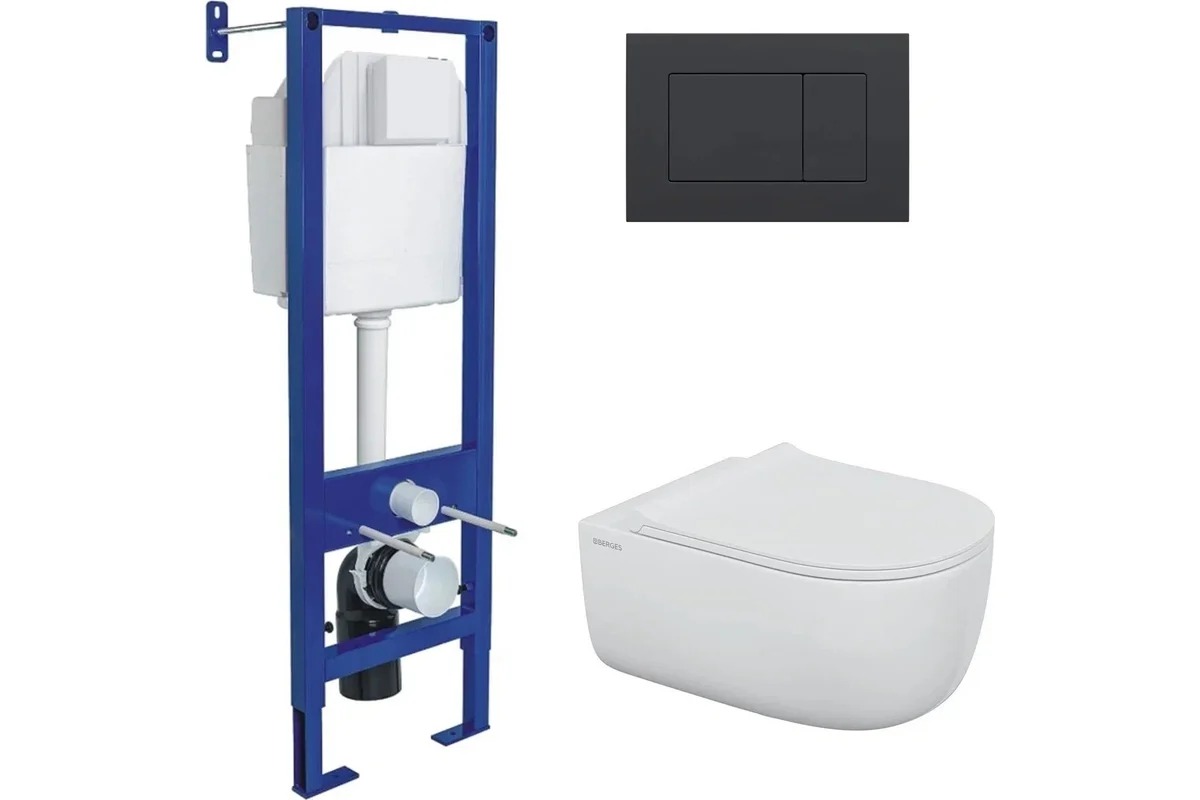 Комплект инсталляция с унитазом Berges Atom кнопка черная SoftTouch, унитаз Ego XL Rimless, сиденье с soft-close (043360)
