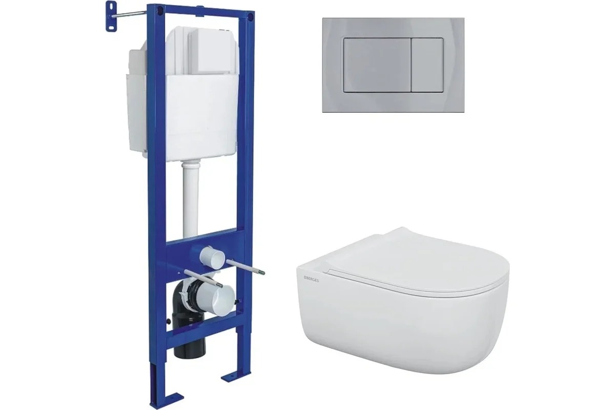 Комплект инсталляция с унитазом Berges Atom кнопка хром глянец, унитаз Ego XL Rimless, сиденье с soft-close (043359)