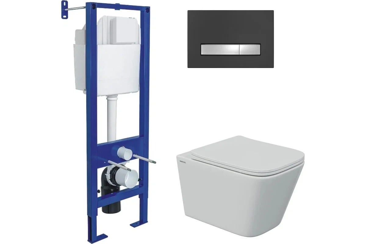 Комплект инсталляция с унитазом Berges Atom Line черная/хром, унитаз Floe S Rimless 51 см, сиденье с soft-close (043366)