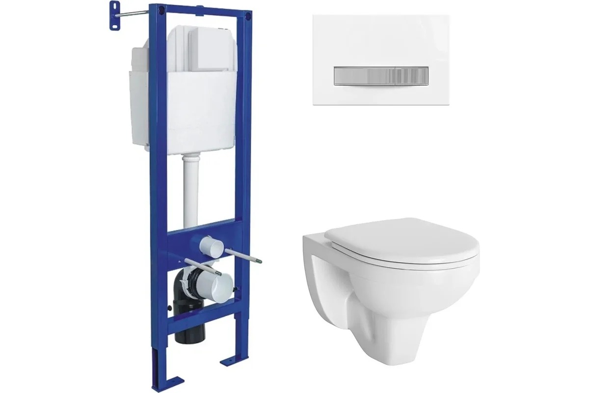 Комплект инсталляция с унитазом Berges Atom Line кнопка белая/хром глянец, унитаз Gamma, сиденье с soft-close (043340)