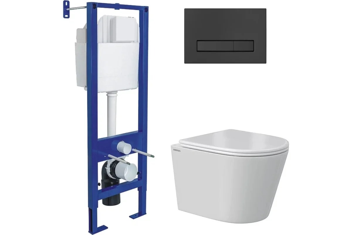 Комплект инсталляция с унитазом Berges Atom Line кнопка черная Soft Touch, унитаз Vita Rimless 49 см, сиденье с soft-close (043382)