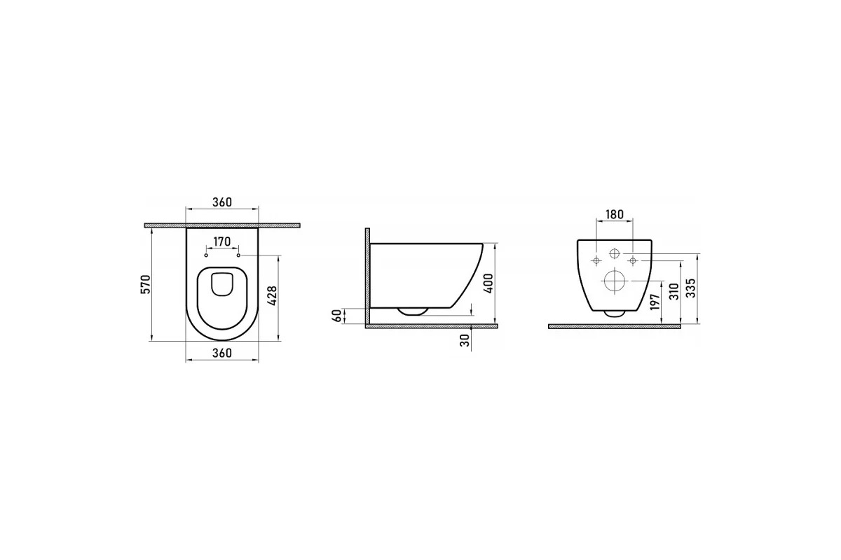 Межосевое расстояние под крепежные шпильки унитаза 18 и 23 см.
