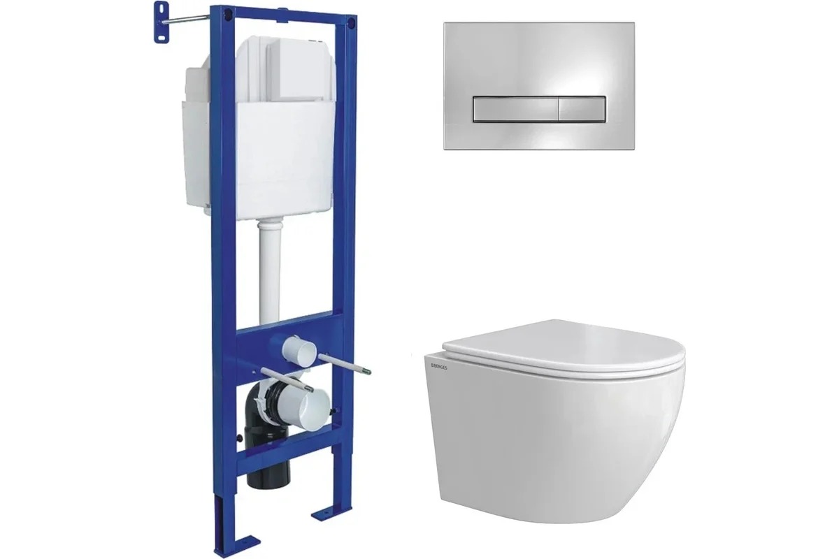 Комплект инсталляция с унитазом Berges Atom Line кнопка хром глянец, унитаз Okus Rimless 49 см, сиденье с soft-close (043392)