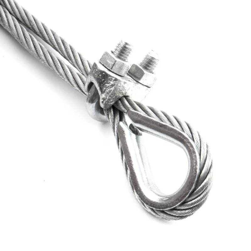 Состав комплекта: трос нерж. (согласно комплекту), зажим (нерж.) - 4шт., коуш (нерж.) - 2шт.
