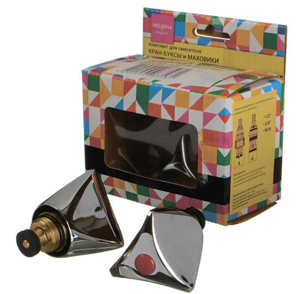Набор для смесителя (маховик Lucia + кран букса 1/2"" 8*20 резина) MELODIA MKP12003C набор из двух керамических кран-букс с металлическими маховиками треугольной формы в комплекте, для холодной и горячей воды, в цвете хром, упакованные в картонную коробку.