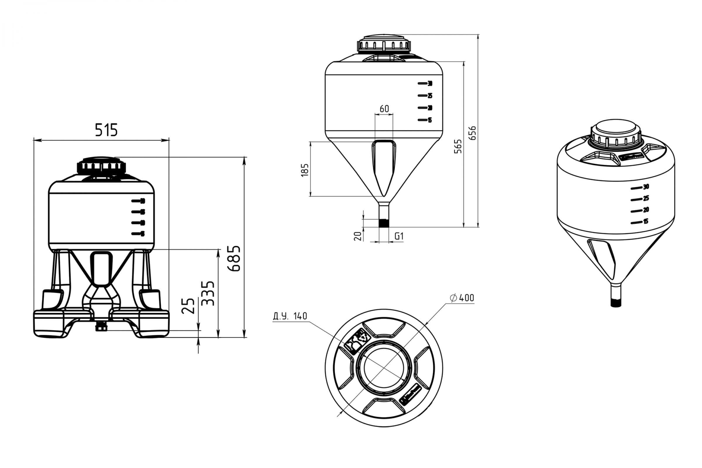Емкость для брожения изготовлена из пищевого полиэтилена, имеет мерную шкалу и плоские площадки под установку дополнительного оборудования (гидрозатворов, манометров, фитингов). Плотно закрывается крышкой без доступа кислорода.Преимущества Экопром стандарт 113.0002.000.0: