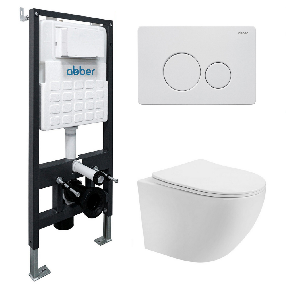Комплект инсталляция с унитазом Abber Bequem с клавишей белый матовый (AC1100T-AC0105-AC0121MW)