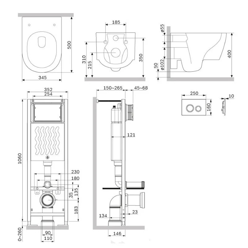 Максимально полный комплект поставки включающий все необходимые крепления патрубки звукоизолирующую прокладку. Экономия пространства благодаря узкой раме – 352 мм шириной. Подходит даже для самых малогабаритных ванных комнат. Заливной клапан с низким уровнем шума - Класс II согласно европейского стандарта EN 14124.