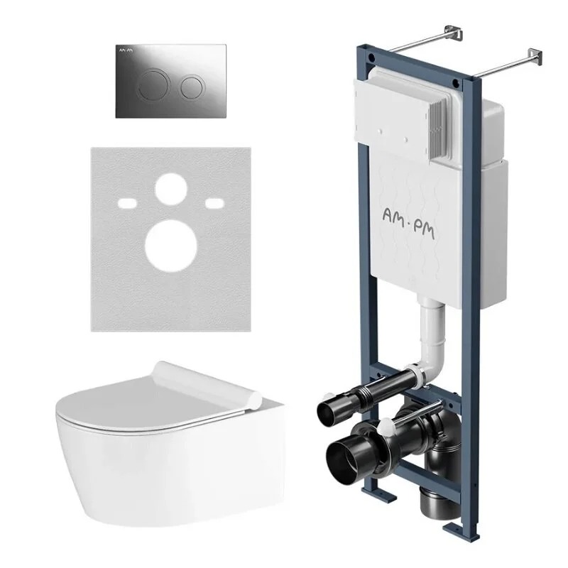 Комплект инсталляция с унитазом AM.PM ErgoFit Jupiter с клавишей смыва L глянц хром с сиденьем микролифт (IS110151.DX77C1700)