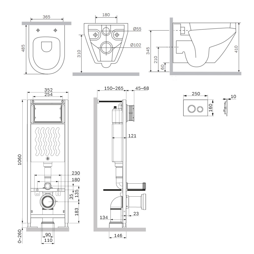Состав поставки: система инсталляции, унитаз подвесной, крышка-сиденье, кнопка смыва, комплект шумоизоляции, монтажный комплект.