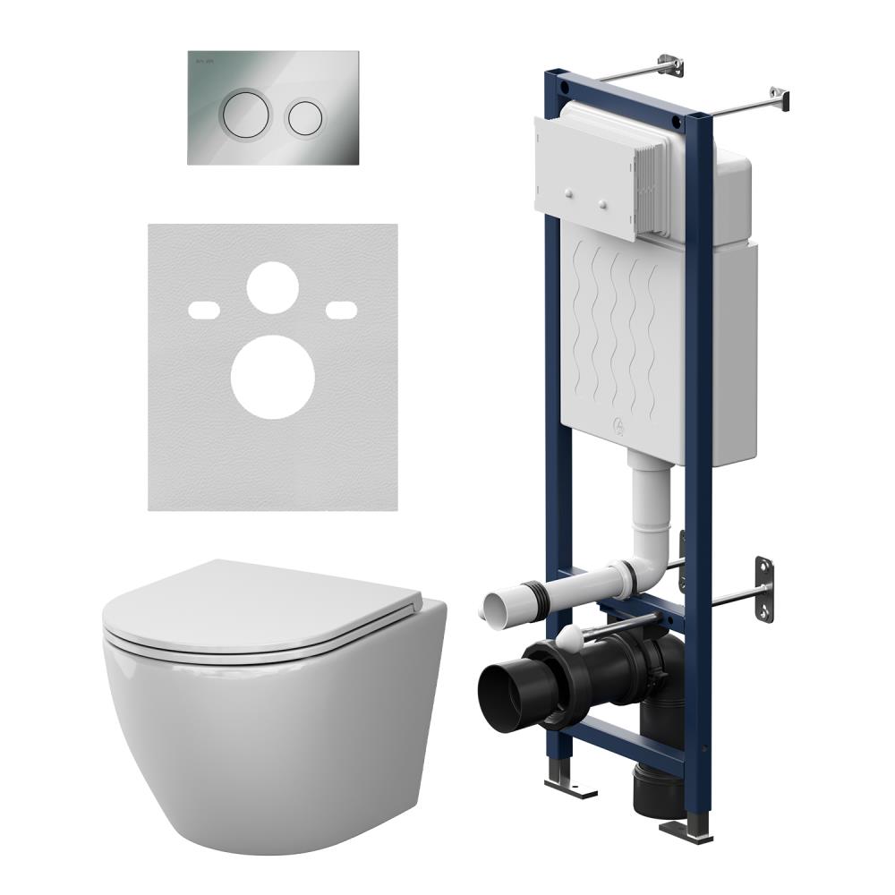 Состав поставки: система инсталляции, унитаз подвесной, крышка-сиденье, кнопка смыва, комплект шумоизоляции, монтажный комплект.