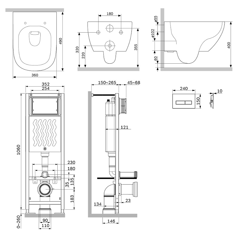 Инсталляция для подвесного унитаза бренда AM.PM коллекции ErgoFit с механическим управлением смыва включает в себя максимально полный комплект поставки: крепления, патрубки, звукоизолирующую прокладку, двухрежимную клавишу смыва. Подвод воды: Сверху универсальный (справа или слева). Размер инсталляции(Ш/Г/В): 352x150-265x1060-1320 мм. Размер клавиши (Ш/Г/В): 250x10x160 мм. Цвет и материал: синий каркас из нержавеющей стали, белый бачок из ABS-пластика, хромированная клавиша. Форма кнопок: круглые.