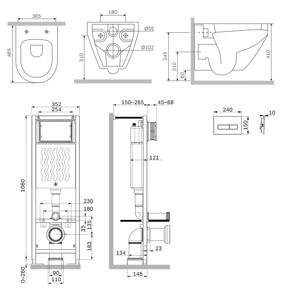 Состав поставки: система инсталляции, унитаз подвесной, крышка-сиденье, кнопка смыва, комплект шумоизоляции, монтажный комплект.