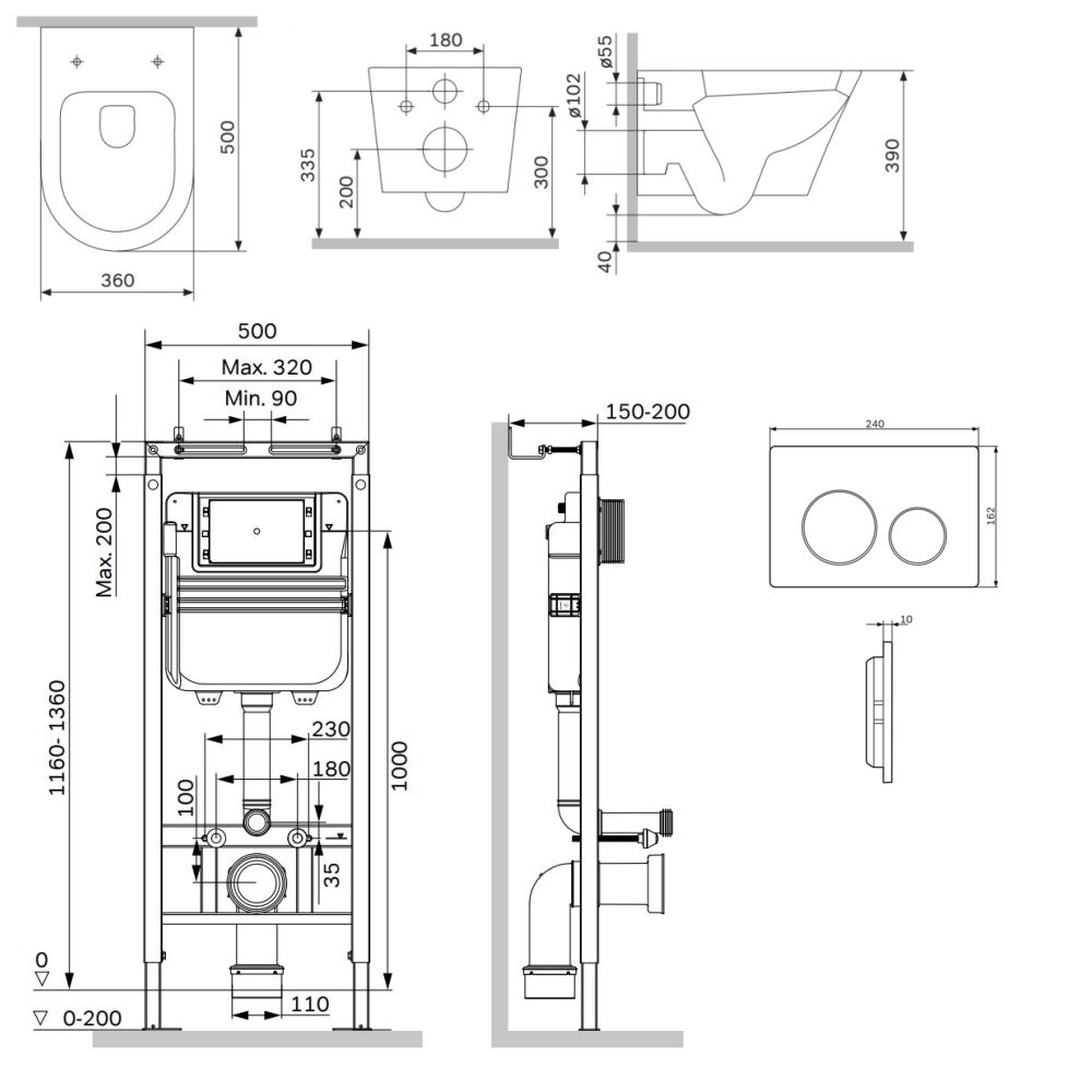 Состав поставки: система инсталляции, унитаз подвесной, крышка-сиденье, кнопка смыва, комплект шумоизоляции, монтажный комплект.