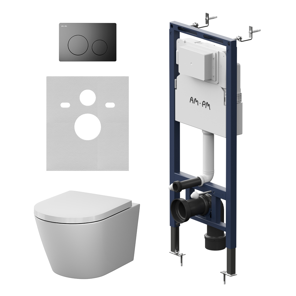 Комплект инсталляция с унитазом AM.PM MasterFit с клав L черная матовая с подвесным унитазом X-Joy Aquaspin (IS130138.851900)