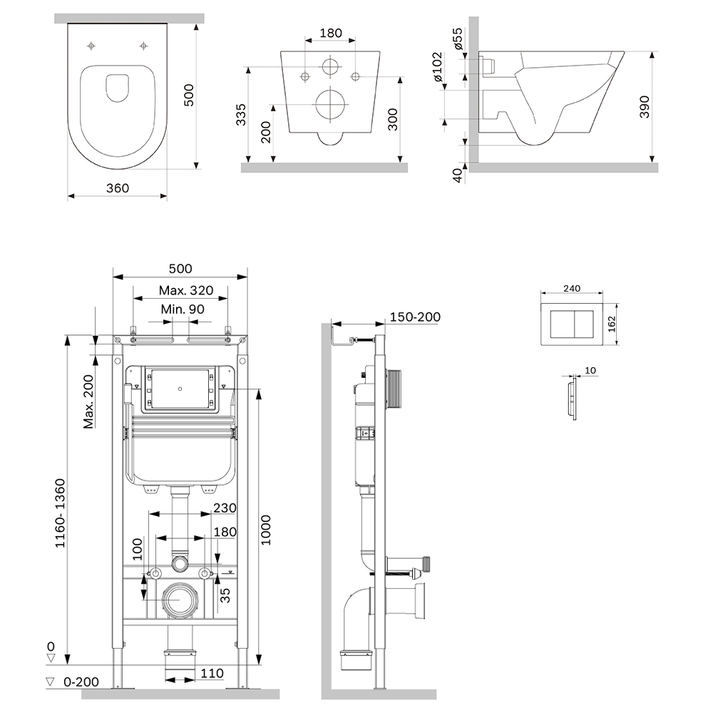 Состав поставки: система инсталляции, унитаз подвесной, крышка-сиденье, кнопка смыва, комплект шумоизоляции, монтажный комплект.