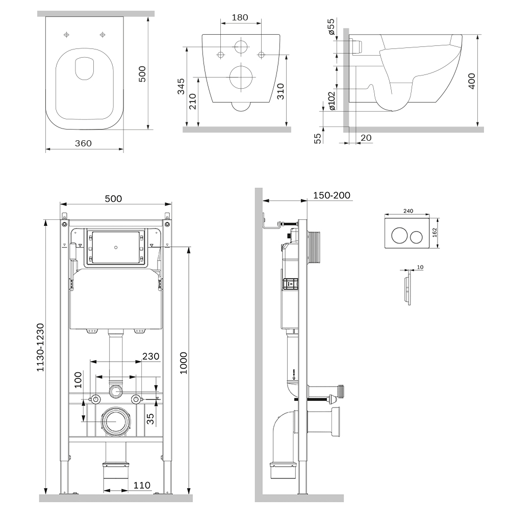 Состав поставки: система инсталляции, унитаз подвесной, крышка-сиденье, кнопка смыва, комплект шумоизоляции, монтажный комплект.