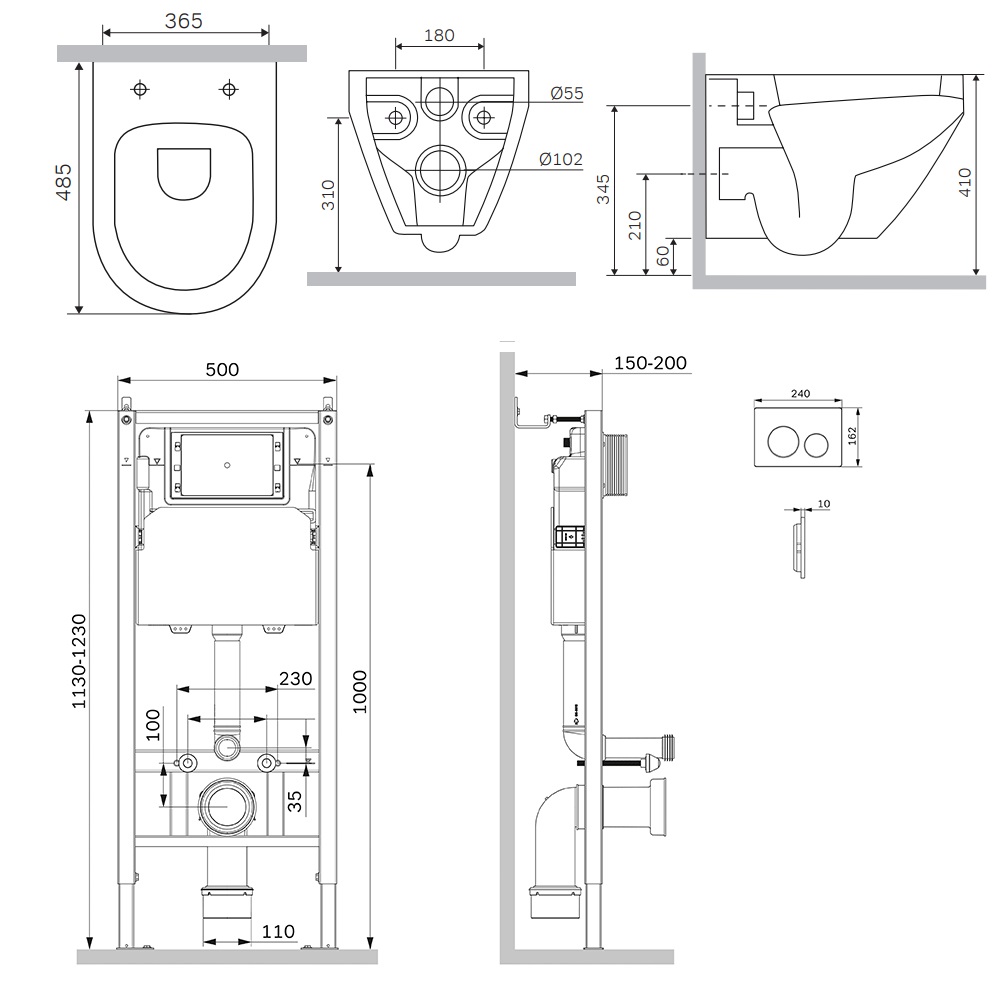 Состав поставки: система инсталляции, унитаз подвесной, крышка-сиденье, кнопка смыва, комплект шумоизоляции, монтажный комплект.